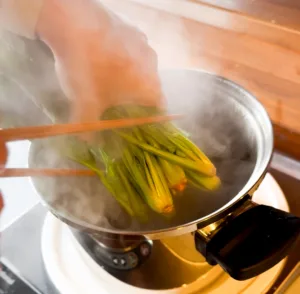 In winter, spinach grows thick, tender, and naturally sweeter. The cold weather enhances its flavor, making it especially rich and vibrant. In fact, in Nagano, there is a traditional method of using the winter cold to increase the sweetness of vegetables. After harvest, vegetables may be stored inside domes made of snow or even buried beneath the snow. As they endure the cold, they naturally concentrate their nutrients and sugars. Some of the winter vegetables you see in Nagano markets have been treated this way, offering a unique sweetness that can only be enjoyed during this season.