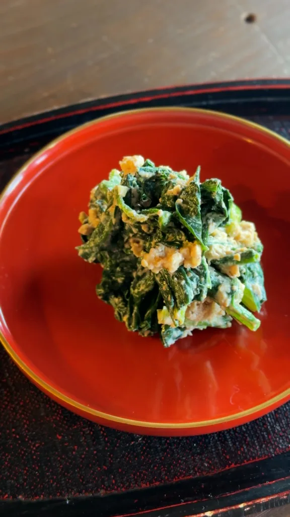 This spinach with walnut miso is a beautiful example of how Nagano’s food culture transforms simple ingredients into something deeply satisfying. Walnuts are not just a topping here — they are the heart of the dish. Simply adding them to vegetables creates a remarkably rich and luxurious flavor, turning humble seasonal greens into a dish with depth, warmth, and character.