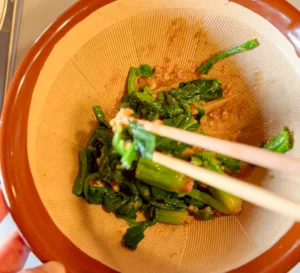 Although this recipe uses spinach, it works beautifully with other leafy green vegetables as well. The key is to blanch them briefly — leafy greens can easily become too soft — and to squeeze out excess moisture thoroughly. Removing the water properly prevents the dish from becoming watery and allows you to fully enjoy the rich, concentrated flavor of the walnut miso.